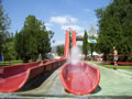 The steps leading up to the rides are coated with special grip textures. There is also a 5 a side football pitch which has a clay surface, surround netting. There is a volleyball court which is made of sand.